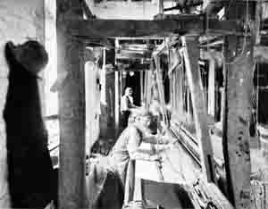 Nineteeenth century photograph showing blanket weavers at their looms. (The Witney Blanket Industry, Alfred Plummer, 1934, Routledge)