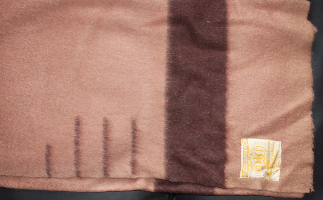62 x 83 in. (full standard size) Three very small (1/8 in) holes, one < ¼ in hole, moth track 12 in long. Size exc, nap good, weave fair, colour good, label good = 78/100