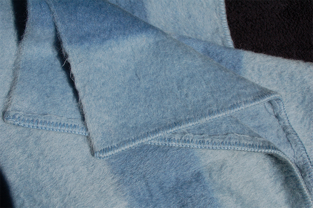 Tone is darker than a pastel, no label. Blanket stitching at ends with few loose stitches.